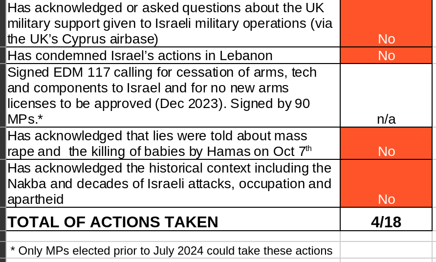| Has acknowledged or asked questions about the UK military support given to Israeli military operations (via the UK’s Cyprus airbase) | No |